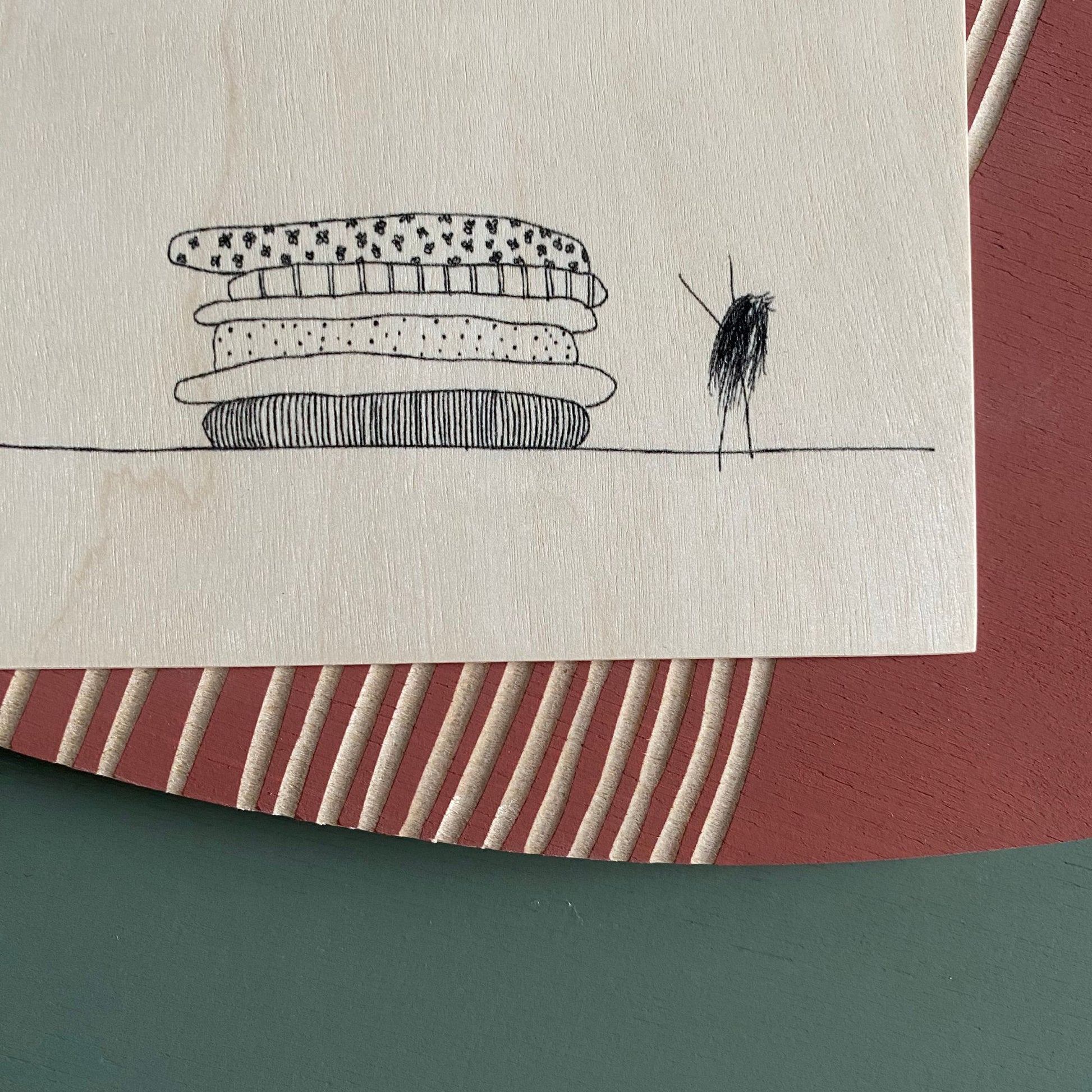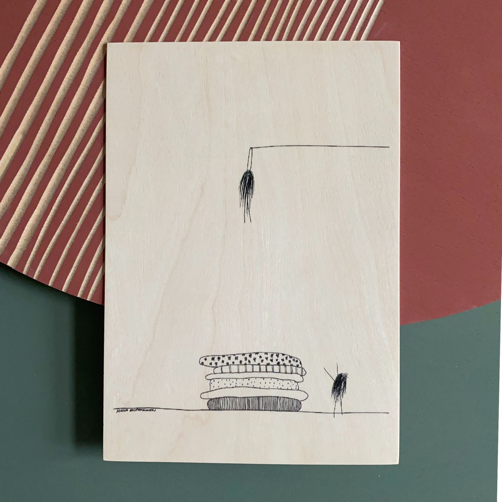 Printed illustrations on Finnish birch plywood, combining art and the beauty of wood. Even though the illustration is a print, each piece is unique – the natural grain of the wood gives every piece its own special atmosphere.